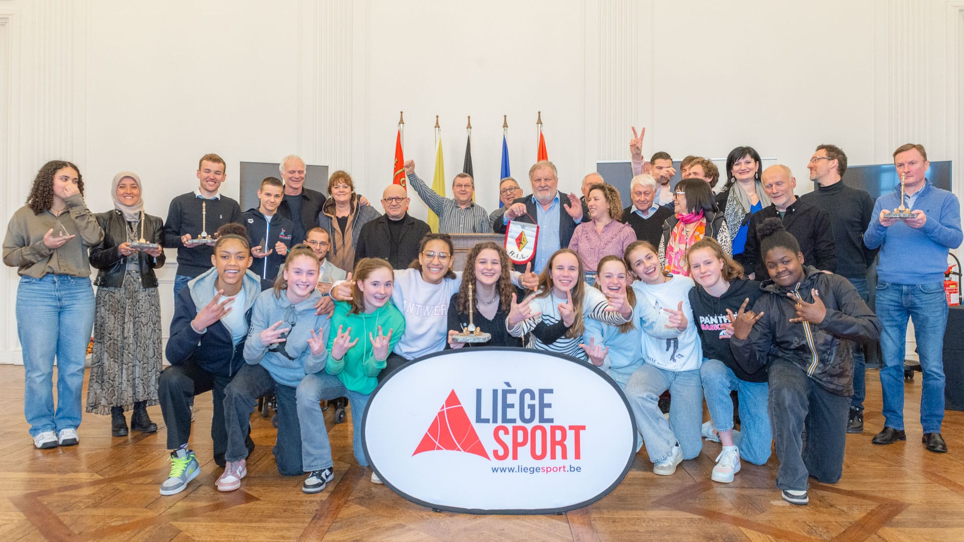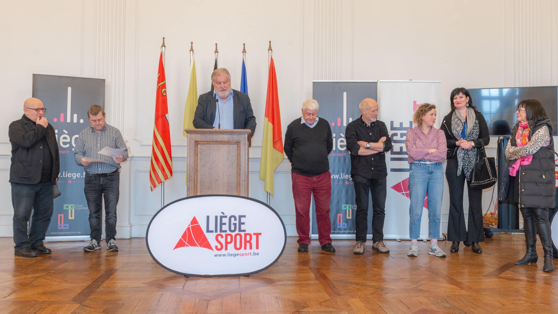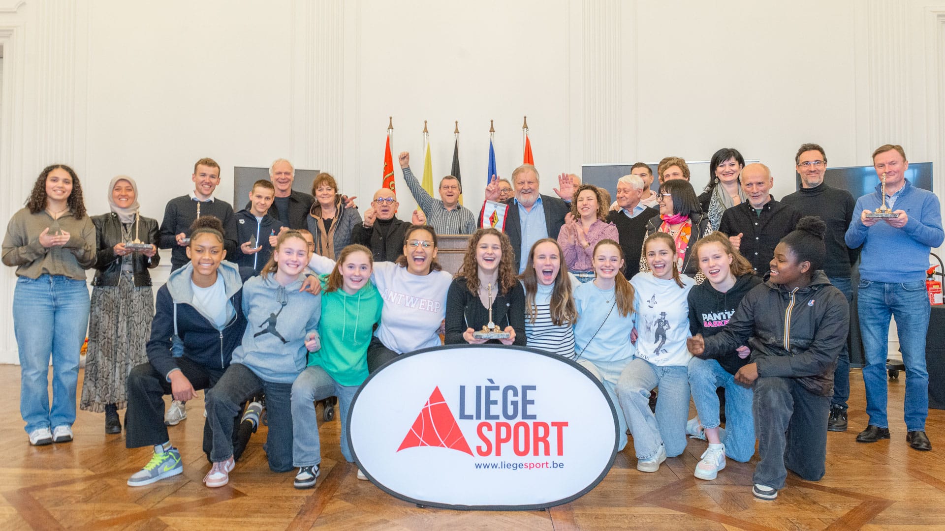 Monsieur Michel FAWAY, Président de Liège Sport a présidé la cérémonie avec l’assistance de Mme Sarah SCHLITZ, Secrétaire d’Etat à l’Egalité des chances, de M. Mehmet AYDOGDU, Echevin de la culture, M. Pierre EYBEN, Conseiller communal, M. André STEIN, M. Marc GERARDY, M. Guy KRETEL, Mme Yvette MATHONET, Mme Marijana BATALIC membres du CA de Liège Sport.