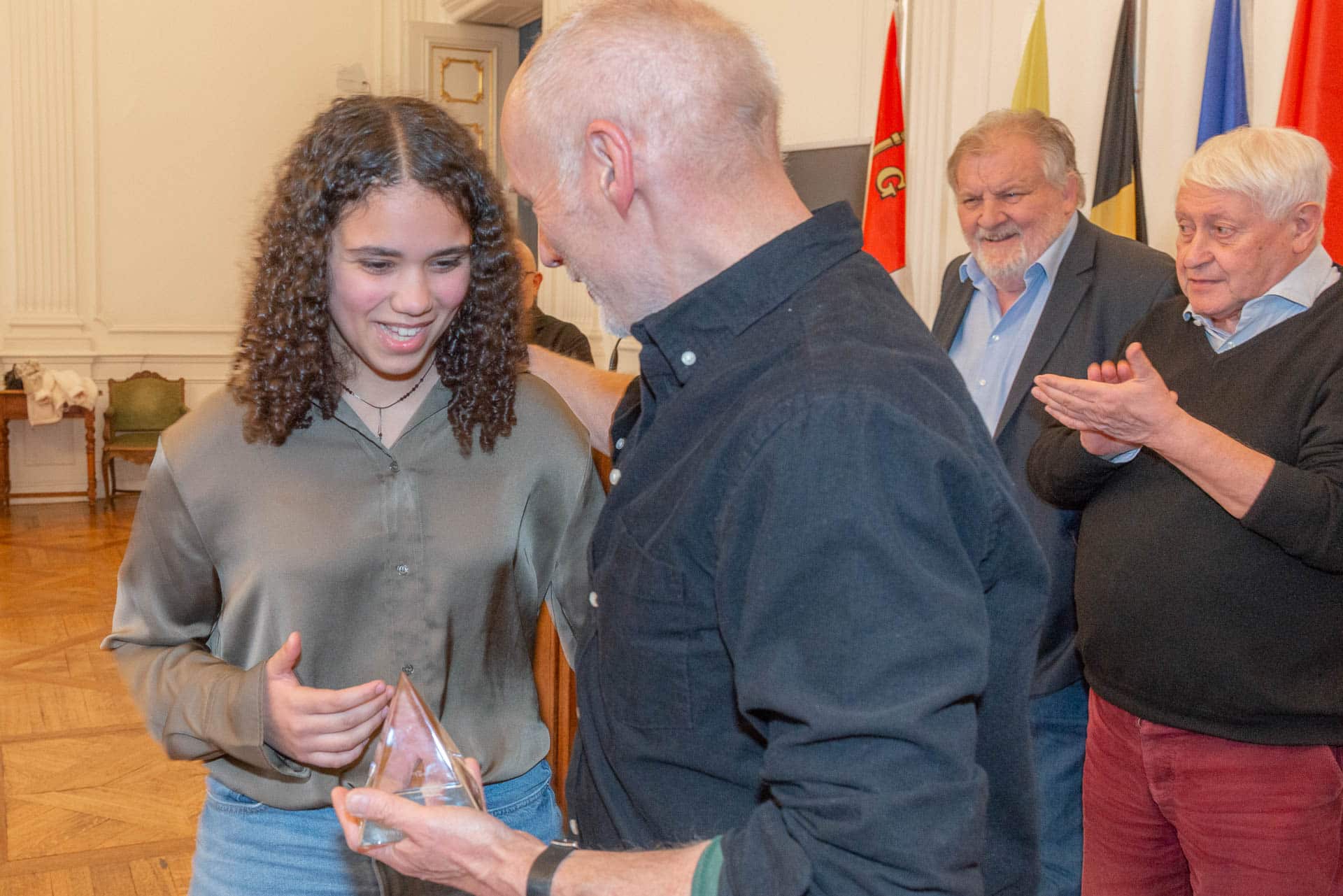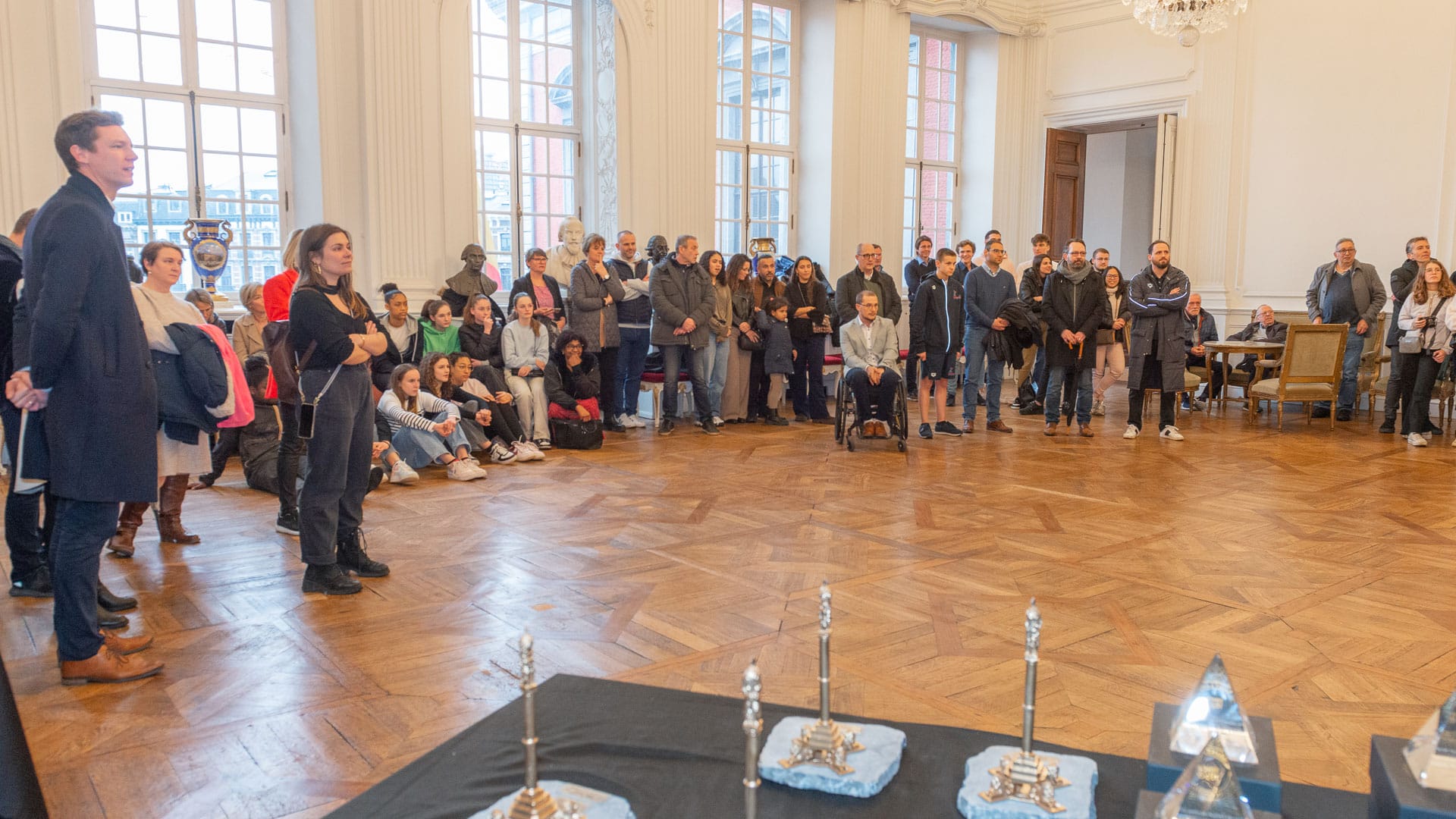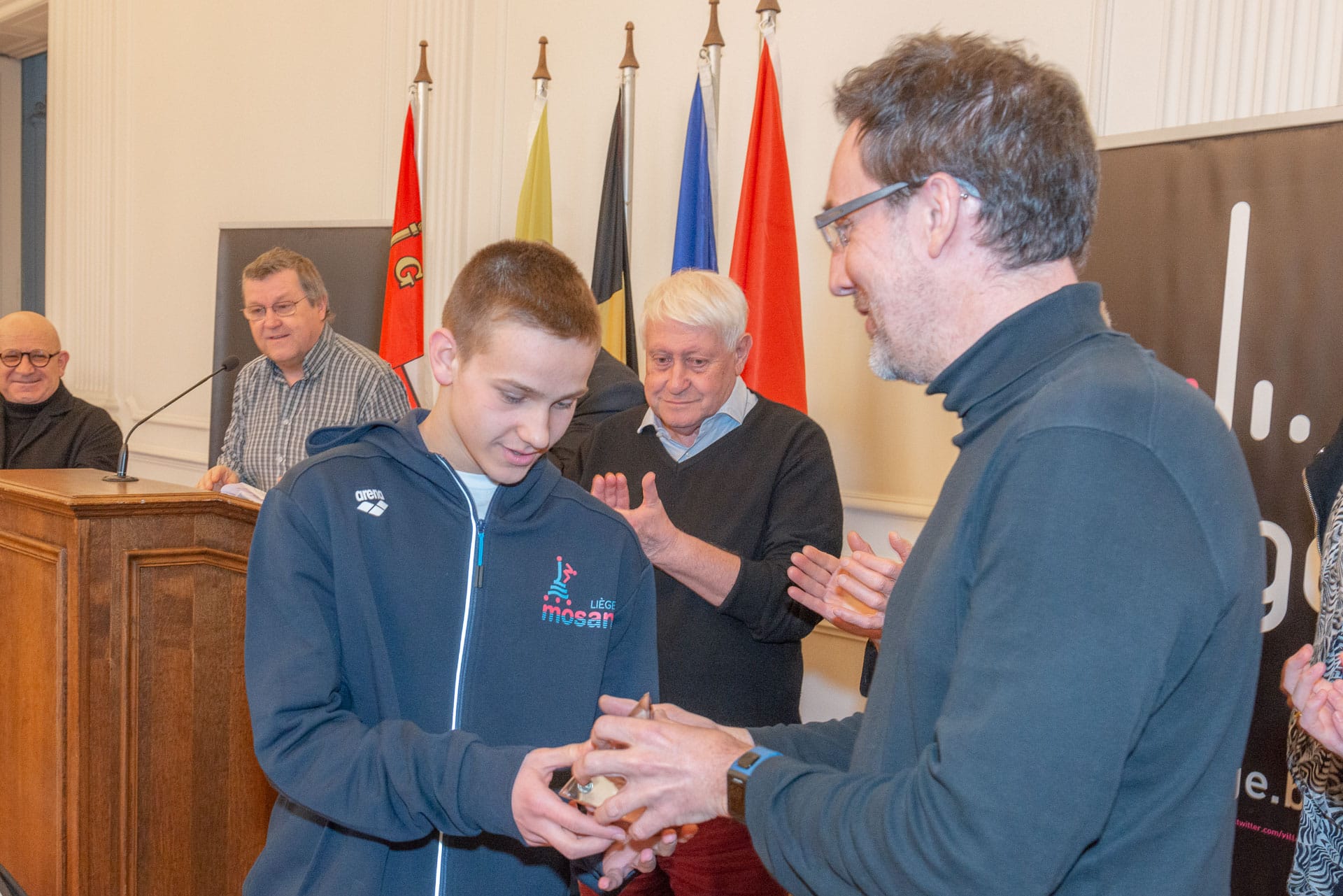 Monsieur Michel FAWAY, Président de Liège Sport a présidé la cérémonie avec l’assistance de Mme Sarah SCHLITZ, Secrétaire d’Etat à l’Egalité des chances, de M. Mehmet AYDOGDU, Echevin de la culture, M. Pierre EYBEN, Conseiller communal, M. André STEIN, M. Marc GERARDY, M. Guy KRETEL, Mme Yvette MATHONET, Mme Marijana BATALIC membres du CA de Liège Sport.