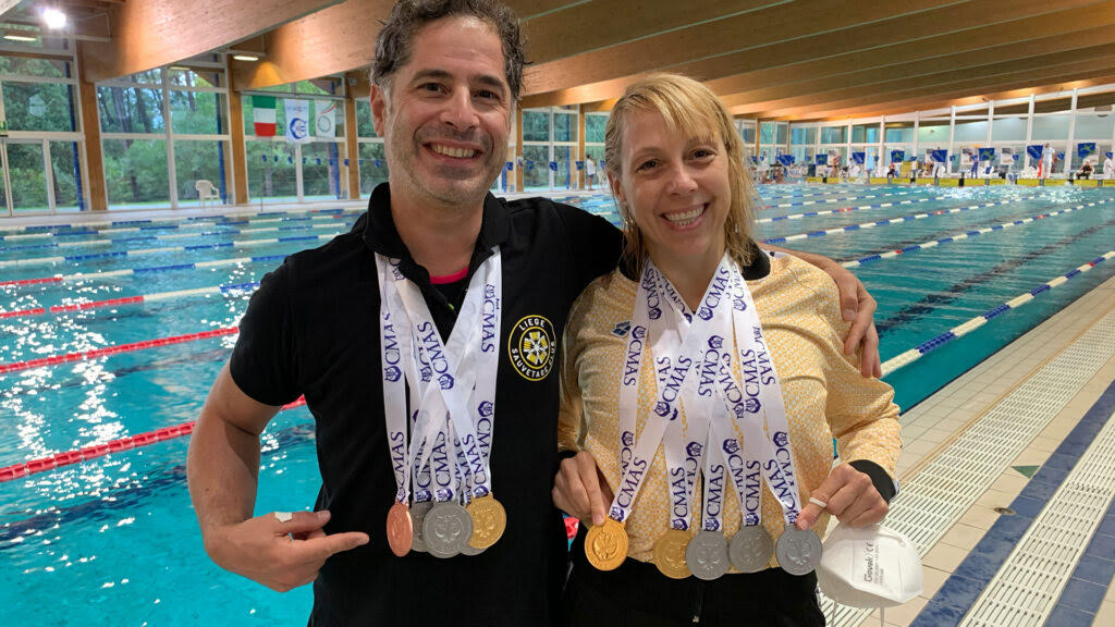 Ce week-end avaient lieu à Lignano en Italie les premiers Championnats officiels d’Europe Masters de nage avec palmes. Muriel et Burak représentaient le seule équipe belge présente et avec quel succès.