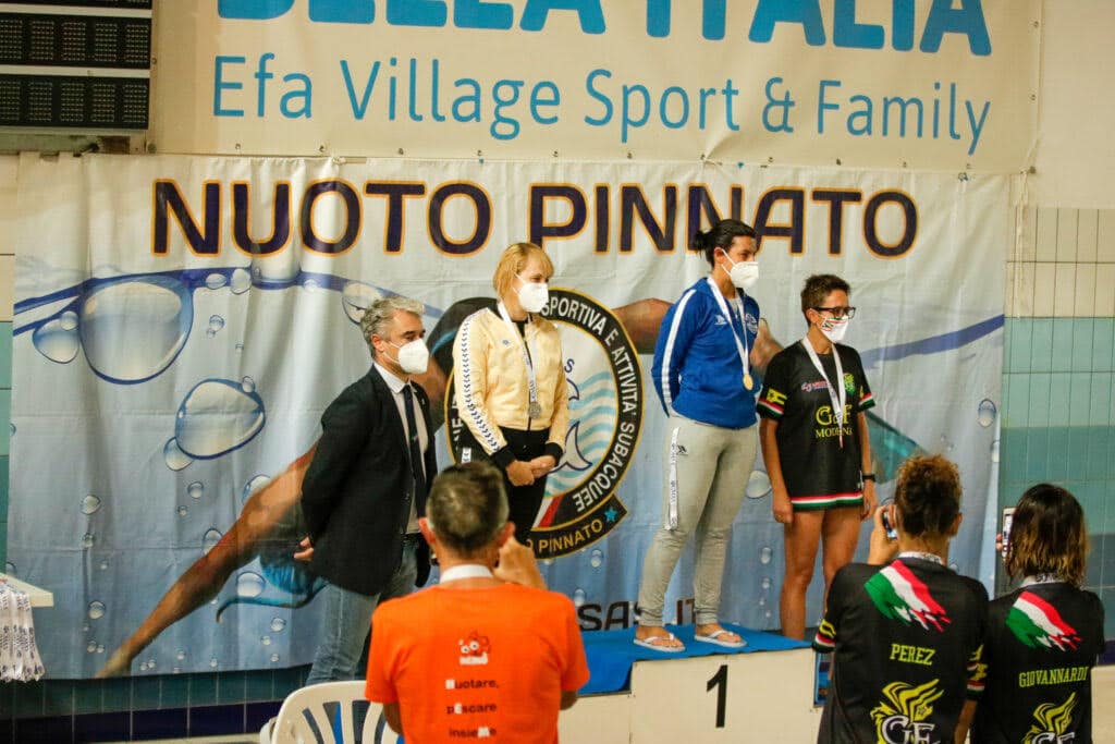 Muriel a remporté les titres de championne d’Europe Masters en Nage bi-palmes sur 200 et 400 mètres, de vice-championne sur 50 et 100 mètres et la médaillé d’argent en 50 mètres apnée.