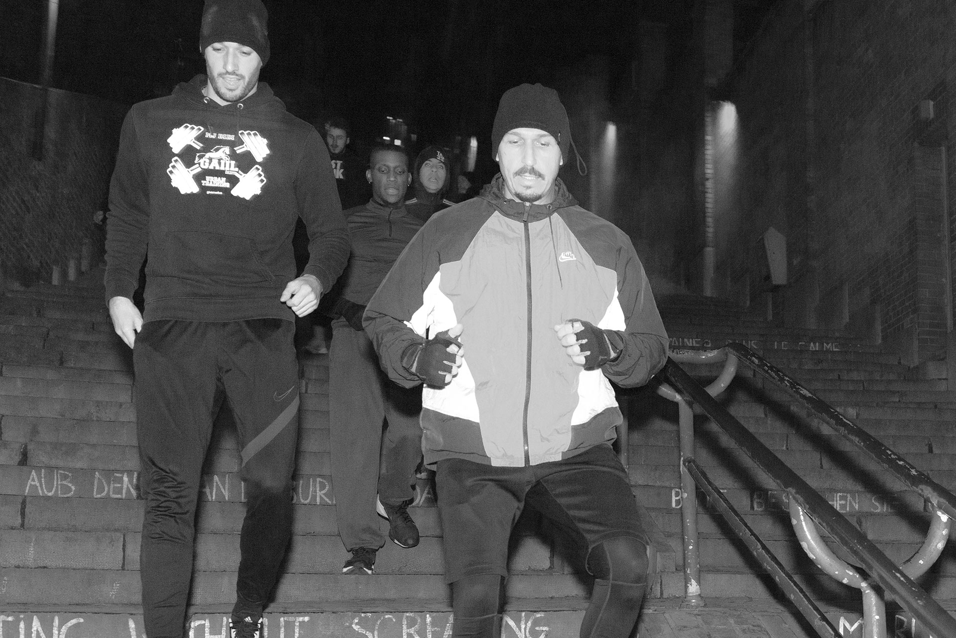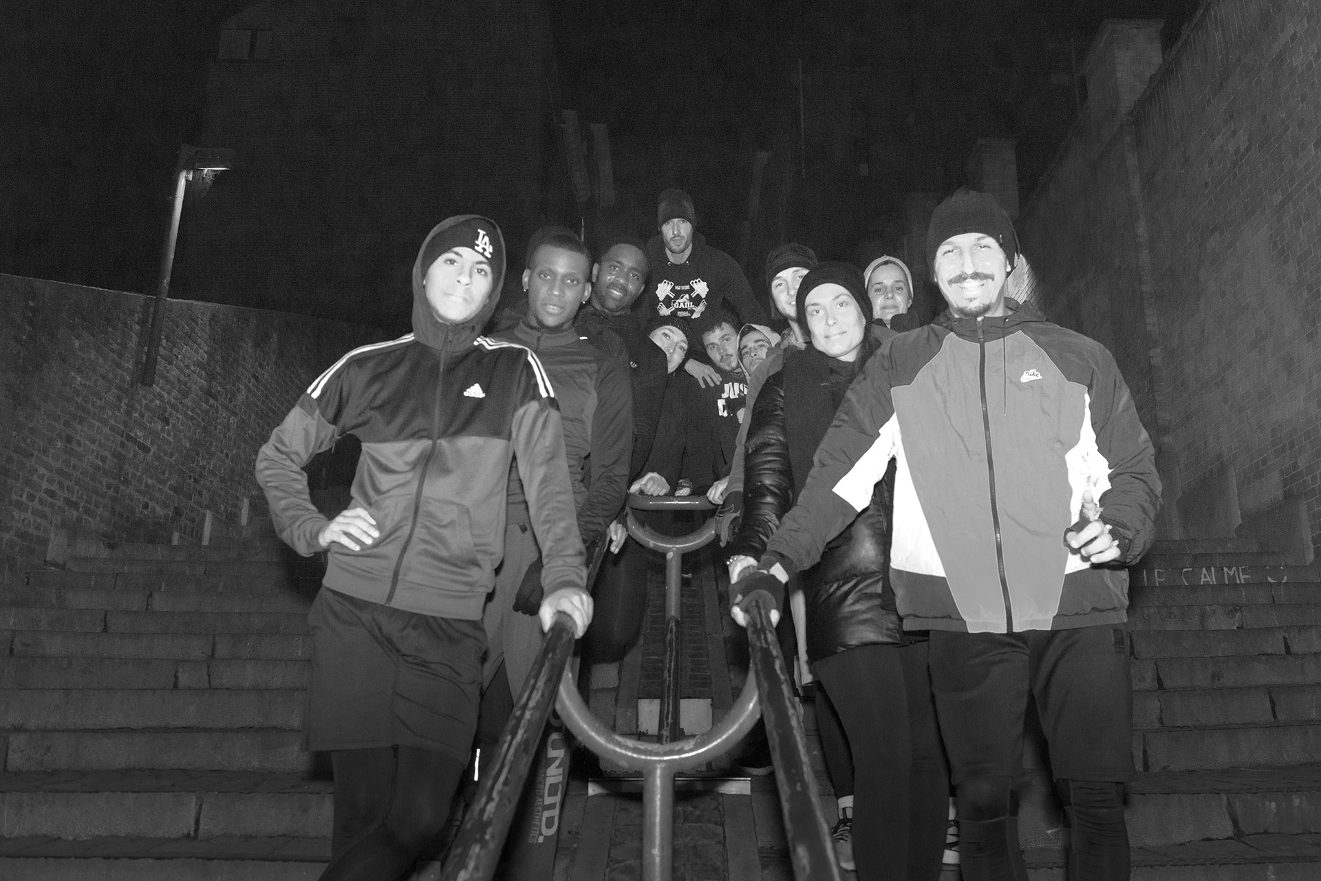 Deux fois par semaine, les jeunes sont invités dans différents sites urbains à entretenir leur condition physique en utilisant prioritairement les éléments du mobilier urbain : escaliers, bancs, murets, …